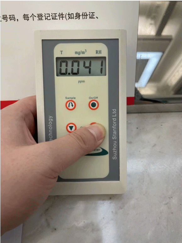 根据国家标准GB/T 18204.2-2014 7.2 《公共场所卫生检验方法》,现场甲醛浓度小于0.041mg/m³,现行国标为0.08mg/m³,甲醛浓度低于国标2倍以上。