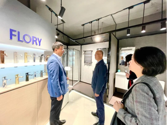 杨副会长等领导一行参观了FLORY卫浴展厅,并认证听取了集团旗下FLORY品牌的发展历程和现状,详细了解FLORY多款拳头产品的工艺、设计、材质性能等,复荣高品质的出口产品受到了到访领导的高度认可。在全球新冠疫情的影响下,国内外环境的深刻变化也给FLORY品牌带来了一系列新机遇和新挑战,领导们就当下市场形势交流了各自对卫浴行业未来发展方向的看法。
